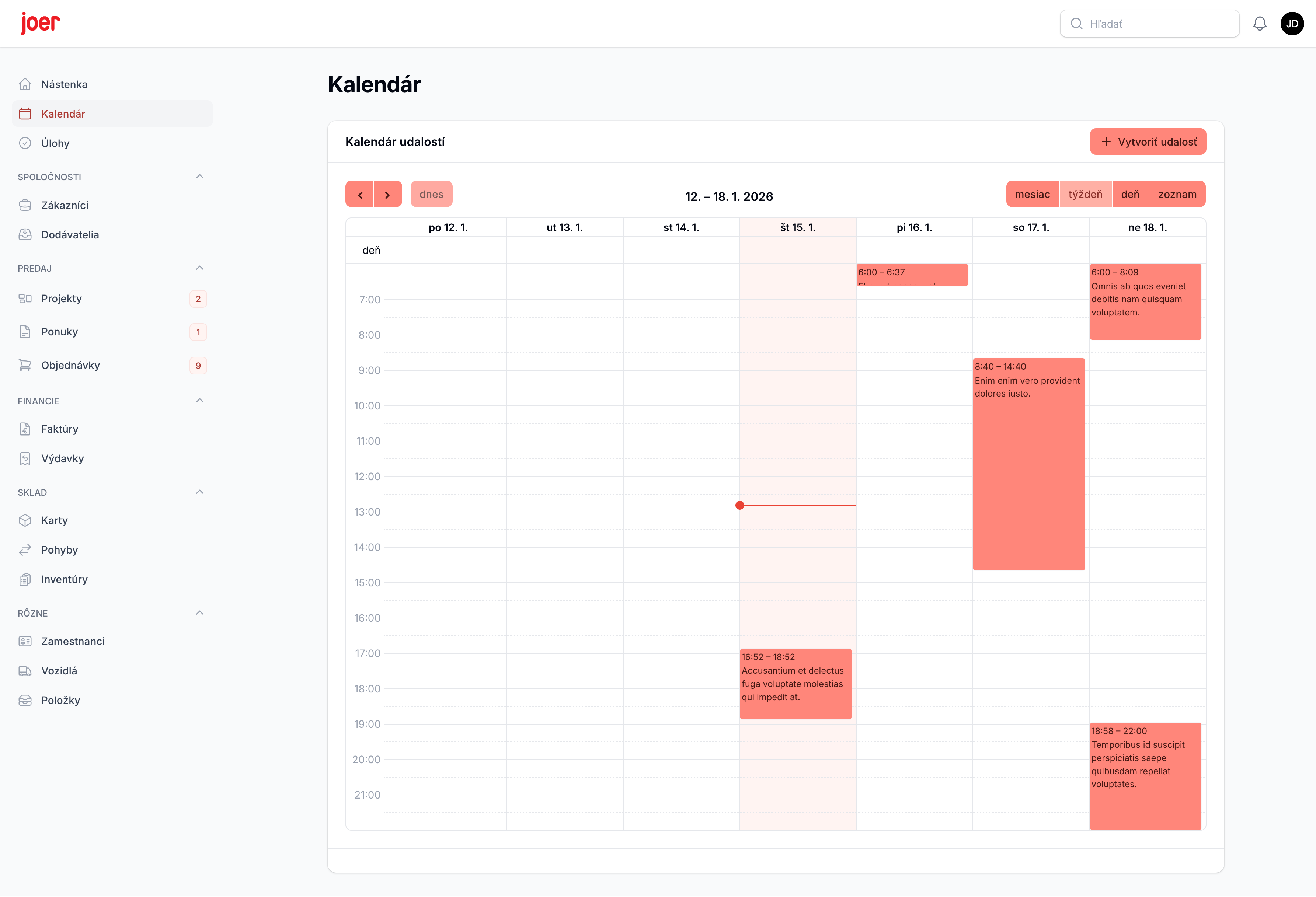 Pre spoločnosť Joer sme vyvinuli interný informačný systém (ERP) na mieru, ktorý digitalizuje celý životný cyklus zákazky – od prvotnej cenovej ponuky až po finálnu fakturáciu. Aplikácia nahrádza viacero izolovaných nástrojov jednou centralizovanou platformou, ktorá umožňuje efektívne riadenie vzťahov so zákazníkmi (CRM), tvorbu kalkulácií a sledovanie nákladovosti projektov v reálnom čase. Kľúčovou súčasťou riešenia je modul pre kapacitné plánovanie v interaktívnom kalendári a presná evidencia odpracovaného času na jednotlivých úlohách (lakovanie, montáž, formátovanie). Systém poskytuje manažmentu detailný prehľad o ziskovosti zákaziek a vyťaženosti zamestnancov, čím výrazne zefektívňuje administratívne a výrobné procesy.